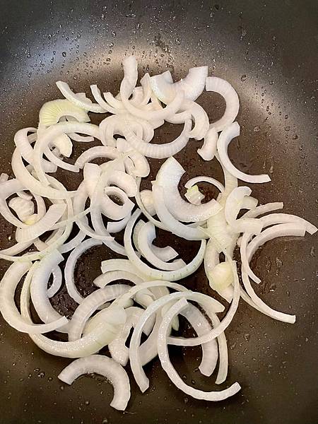作法:先準備一些昨天切剩的洋蔥下鍋一樣炒至金黃