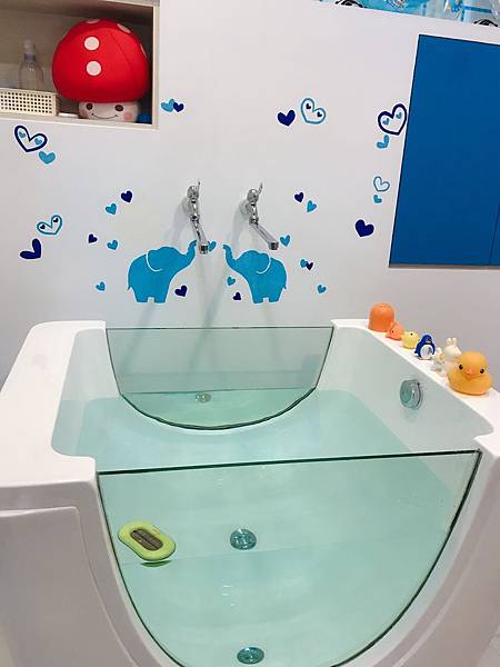 店內員工非常親切跟寶寶玩還有按摩油按摩全身使他放鬆心情,鵝子好像也知道待會可以玩水看起來非常開心
